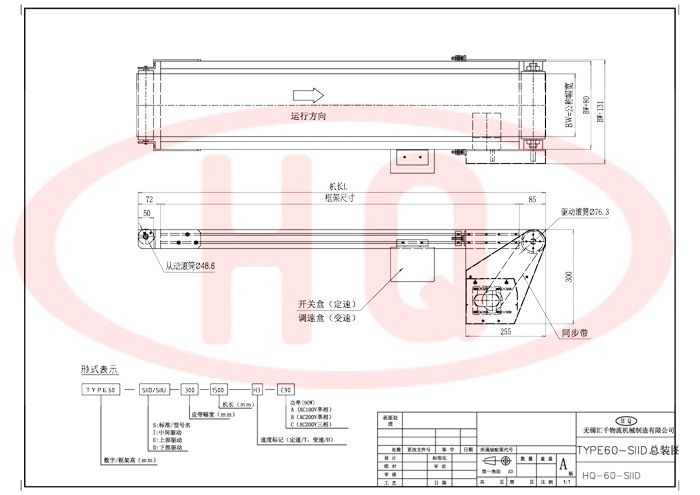使用60mm鋁合金型材支架,皮帶傳送、頭部驅(qū)動(dòng),直線輸送.