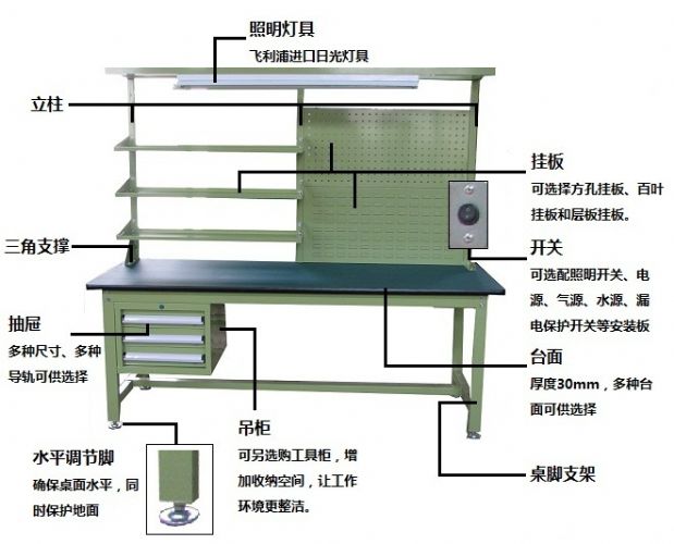 輕型工作臺,也叫輕型工作桌,是輝光倉儲物流設備有限公司的主要產品。采用優(yōu)質冷扎板精工制作而成,堅固的工作桌框架,牢固平穩(wěn),可使工作桌承重500kg;多種工作桌面選擇,可配合不工使用的要求;工具吊柜(箱),側柜(箱),外形美觀;層板,抽屜質量上乘,承重大,抽屜內可根據需要任意分隔;節(jié)約空間,適用性強。
