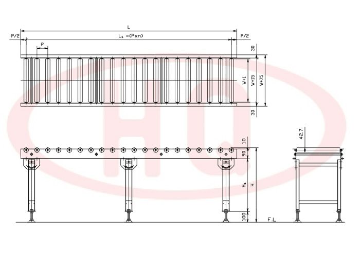 | 輸送機(jī)幅寬W+75(mm) | 175 | 275 | 375 | 475 | 575 | 675 | 775 | 875 | 975 | 1,075 | ||